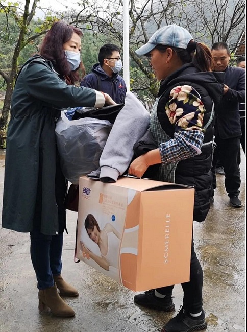 在結(jié)對認(rèn)親走訪活動中,彭虹來到貧困戶魯明秀家中,詳細了解了她的家庭狀況、子女就學(xué)情況,看到她生活條件良好,彭虹非常高興,鼓勵她堅定信心、脫貧致富。并送去了羊毛冬被、小孩衣物等生活用品。