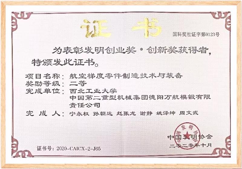 (通訊員 周文武 王婭莉)近日,萬航模鍛聯(lián)合西北工業(yè)大學聯(lián)合申報的《航空梯度零件制造技術(shù)與裝備》項目榮獲中國發(fā)明協(xié)會發(fā)明創(chuàng)業(yè)獎·創(chuàng)新獎二等獎。