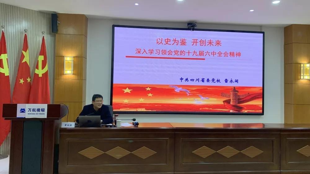 近日,萬(wàn)航模鍛黨委舉行黨史學(xué)習(xí)教育讀書(shū)班。邀請(qǐng)中共四川省委黨校教授就黨的十九屆六中全會(huì)精神進(jìn)行專(zhuān)題輔導(dǎo)。