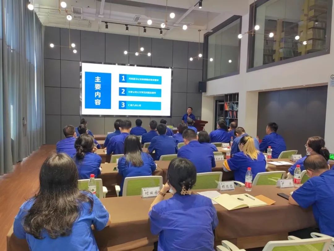 公文處理專題培訓(xùn)特邀國機(jī)重裝綜合管理部副部長楊耀龍進(jìn)行專題講授。培訓(xùn)圍繞公文種類與使用、行文規(guī)則、公文格式等內(nèi)容進(jìn)行了詳細(xì)的講解,并結(jié)合公文處理日常工作實(shí)踐,通過相關(guān)公文案例,列舉了公文處理中常見的問題和容易忽略的細(xì)節(jié)。此次培訓(xùn)針對(duì)性強(qiáng)、內(nèi)容豐富、重點(diǎn)突出,對(duì)參加培訓(xùn)人員進(jìn)一步提高公文處理水平具有重要的指導(dǎo)意義。
