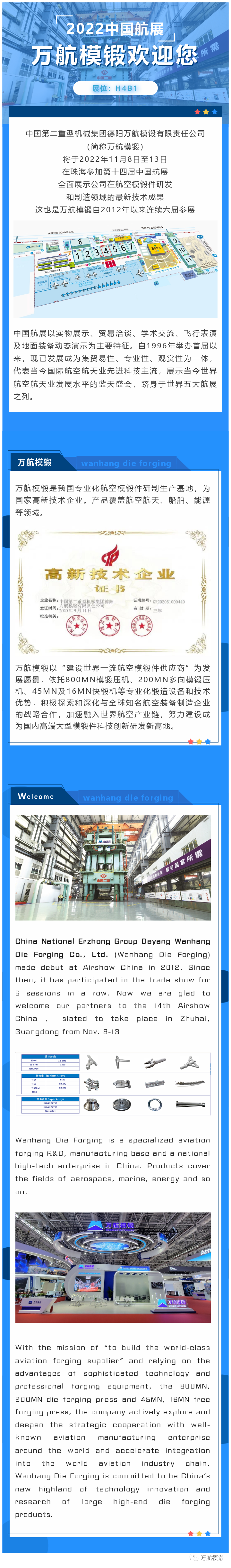 2022中國航展:萬航模鍛H4B1展位期待您的光臨
