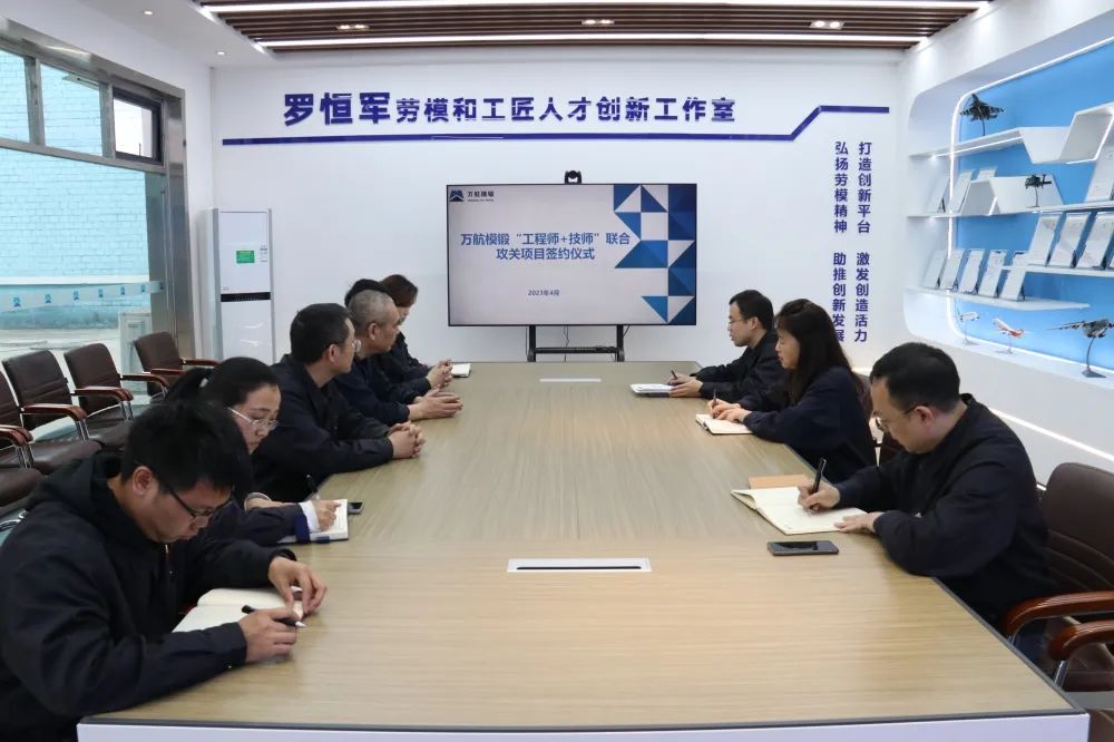 羅恒軍勞模和工匠人才創(chuàng)新工作室舉行“工程師+技師”聯(lián)合攻關(guān)項(xiàng)目簽約儀式。萬(wàn)航模鍛黨委副書(shū)記、工會(huì)主席彭虹出席,四川省勞動(dòng)模范、工作室領(lǐng)銜勞模羅恒軍主持簽約儀式。
