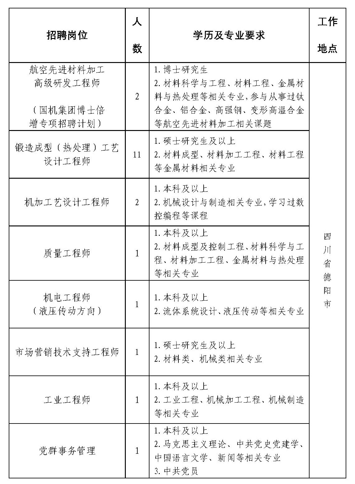 中國第二重型機械集團德陽萬航模鍛有限責任公司2023冬季招聘公告