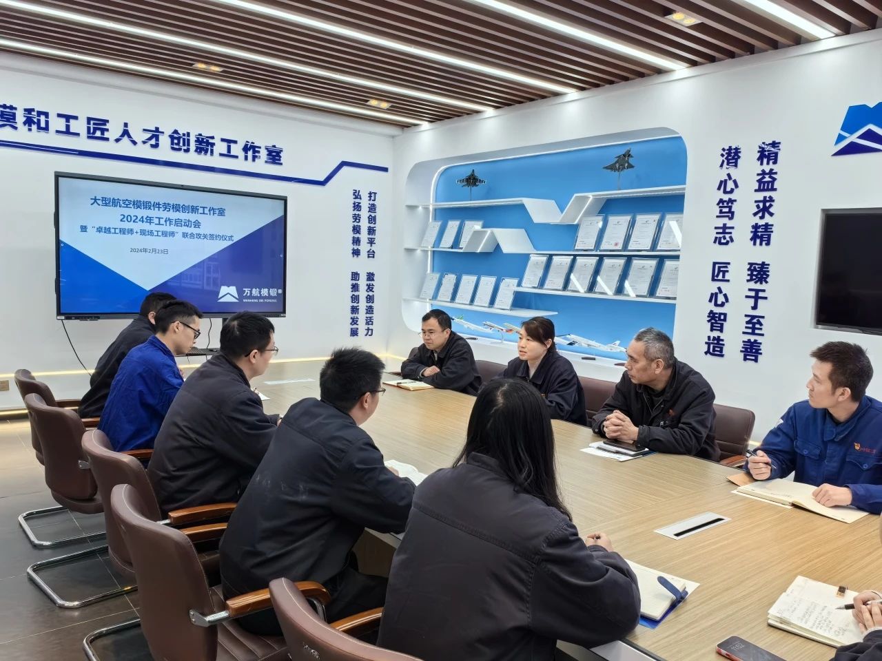 近日,萬航模鍛大型航空模鍛件勞模創(chuàng)新工作室舉行“卓越工程師+現(xiàn)場(chǎng)工程師”聯(lián)合攻關(guān)項(xiàng)目簽約儀式。4項(xiàng)聯(lián)合攻關(guān)項(xiàng)目簽約。