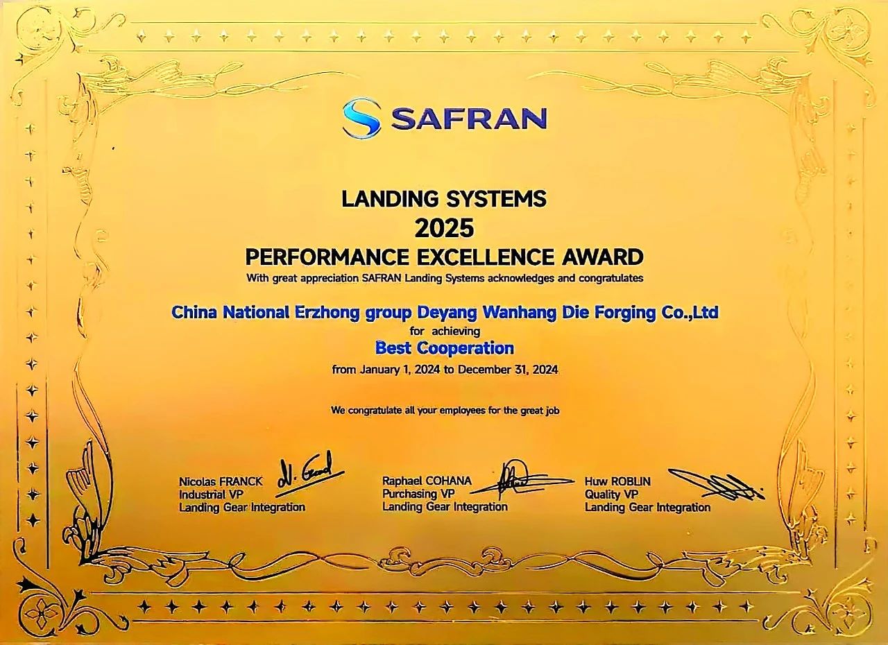 近日,在賽峰起落架系統(tǒng)(蘇州)供應(yīng)商大會(huì)上,萬(wàn)航模鍛憑借卓越的交付能力、技術(shù)創(chuàng)新實(shí)力與深度協(xié)同價(jià)值,2024年度再度榮獲賽峰起落架系統(tǒng)“最佳合作獎(jiǎng)”。
