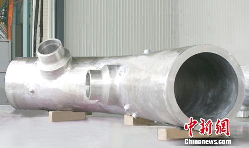 資料圖:中國二重制造的世界首套第三代核電AP1000主管道A段。圖片來源:中國二重。