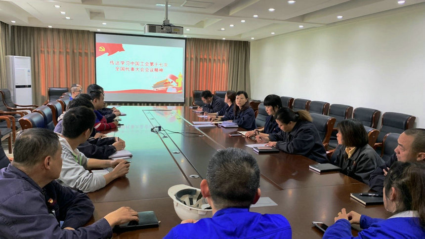 首先,彭主席為大家宣講了中國工會(huì)第十七次全國代大會(huì)的概況和王滬寧同志代表黨中央致詞主要精神、李克強(qiáng)總理經(jīng)濟(jì)形勢(shì)報(bào)告主要精神、王東明同志所作大會(huì)報(bào)告主要精神、李玉賦同志大會(huì)閉幕詞主要精神,并講述了自己做為代表參會(huì)的心情和感受。