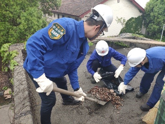此次活動對車間廠房頂防洪排水通道進行清掃,清除了房頂積留的砂石和落葉,為雨季來臨時機加廠防洪工作奠定基礎(chǔ)。(林夢園)