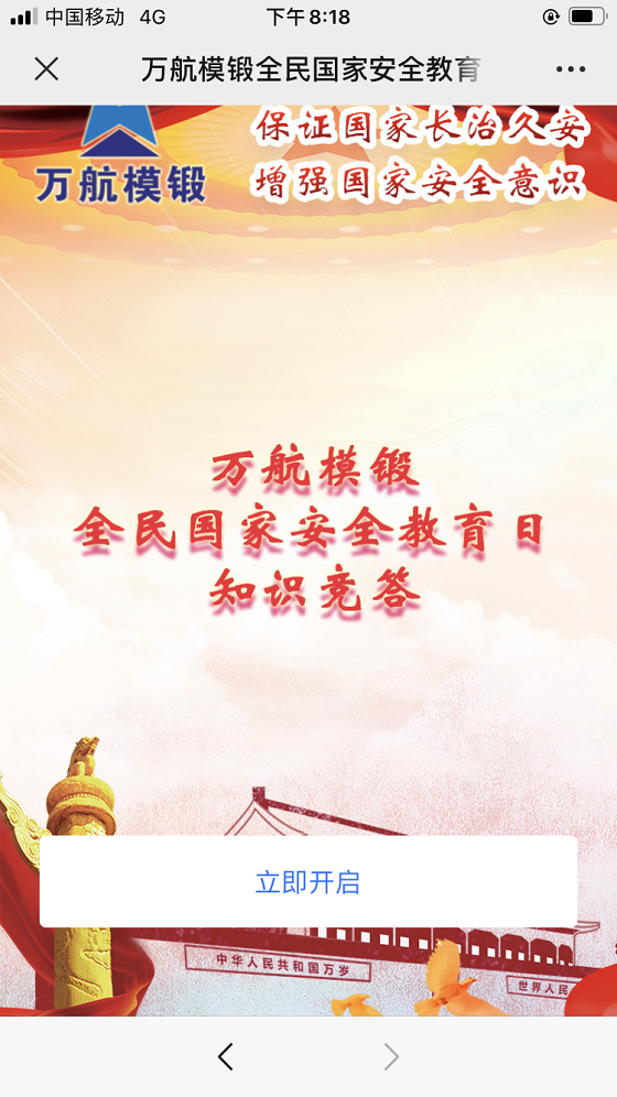 4月15日是第5個(gè)全民國(guó)家安全教育日。萬航模鍛以“堅(jiān)持總體國(guó)家安全觀,統(tǒng)籌傳統(tǒng)安全和非傳統(tǒng)安全,為決勝全面建成小康社會(huì)提供堅(jiān)強(qiáng)保障”為主題,開展了內(nèi)涵豐富、形式多樣的國(guó)家安全宣傳教育活動(dòng)。
